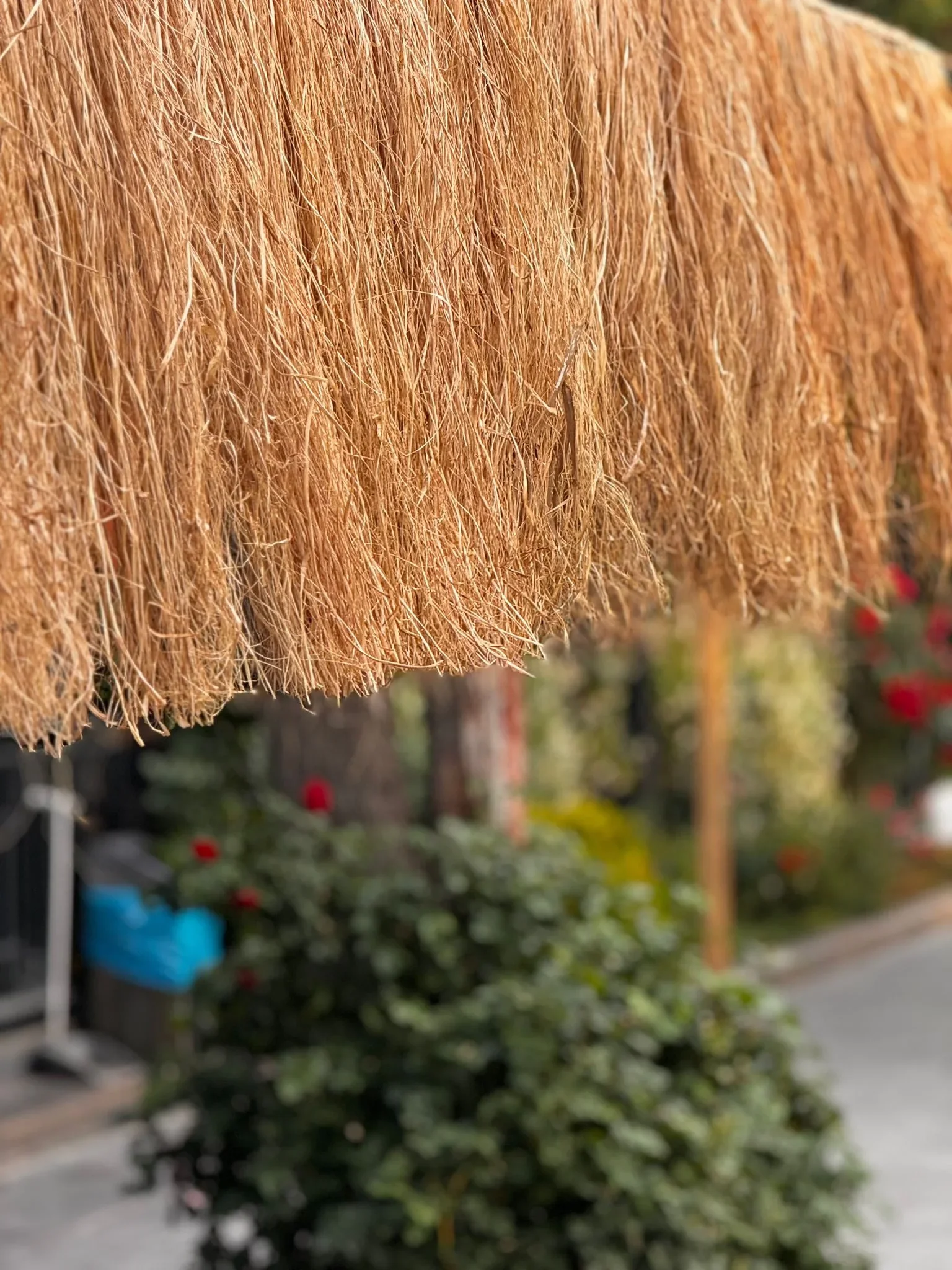 Hasır püskül otu (1 metre x 75 cm), doğal görünümü ve el yapımı saçaklı dokusuyla bohem ve rustik dekorasyonlar için mükemmel bir tercihtir.