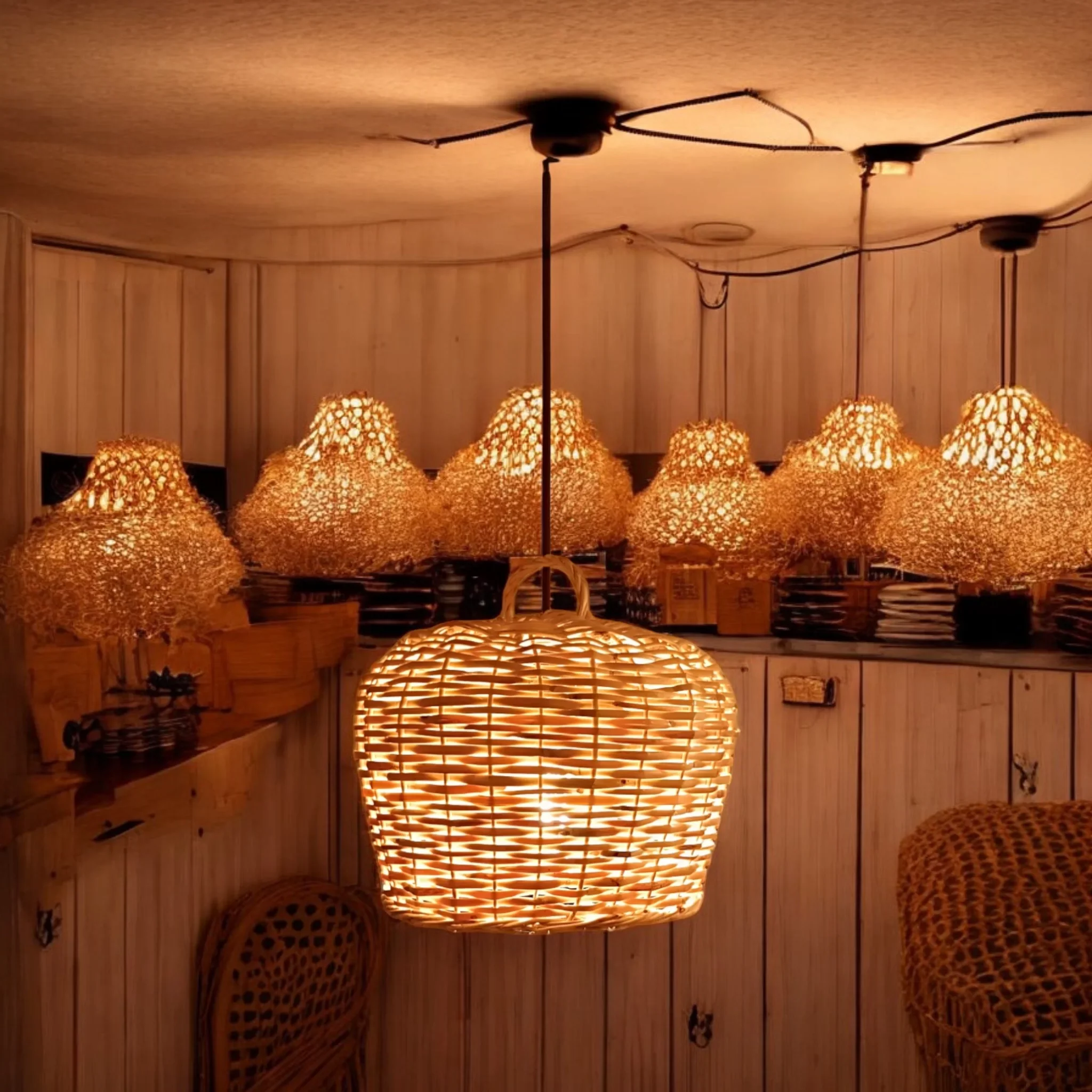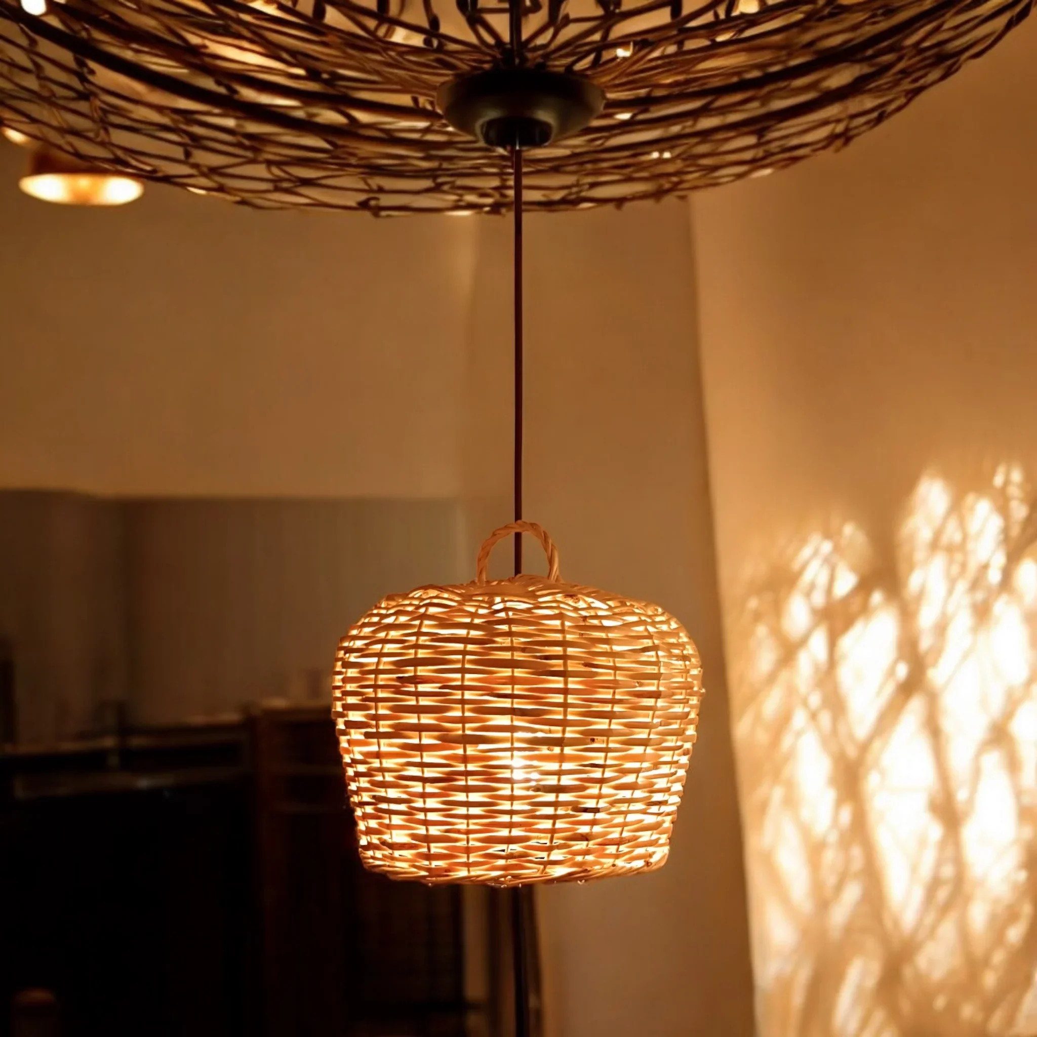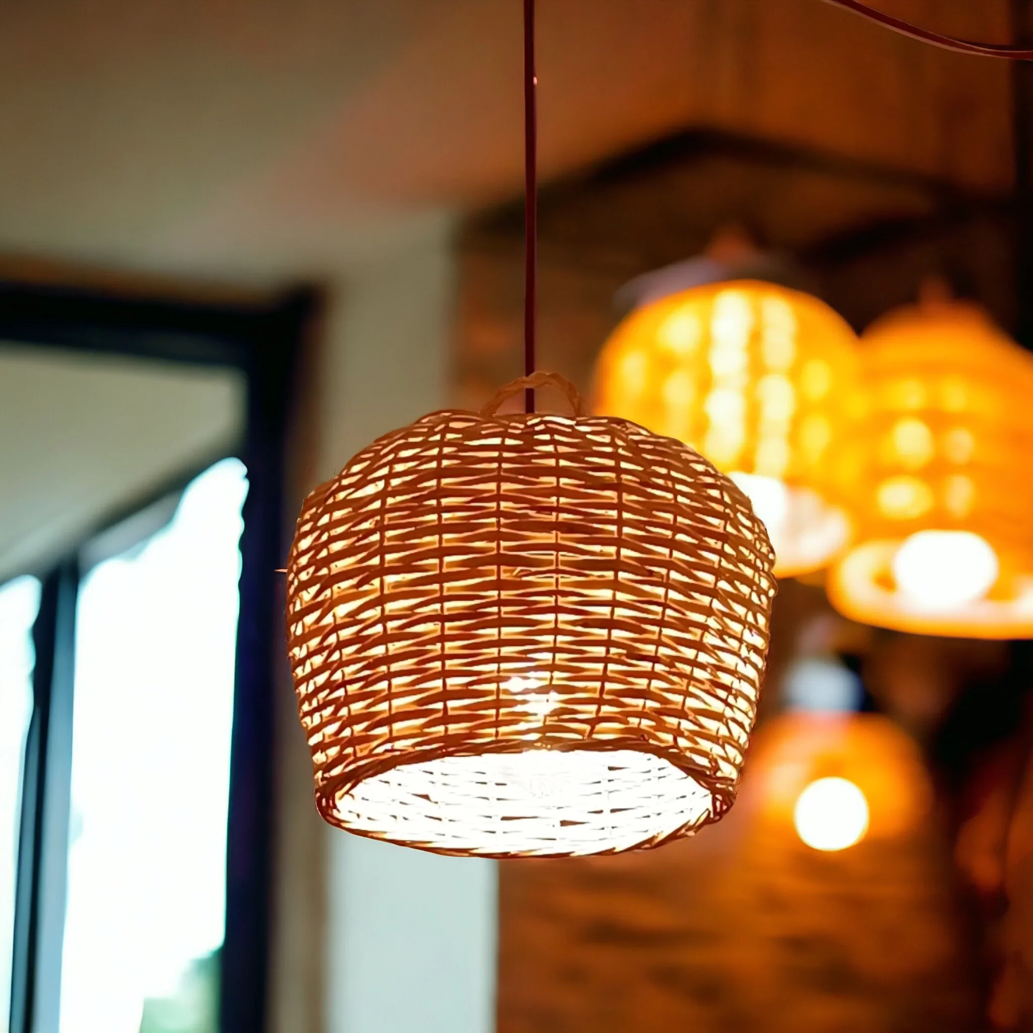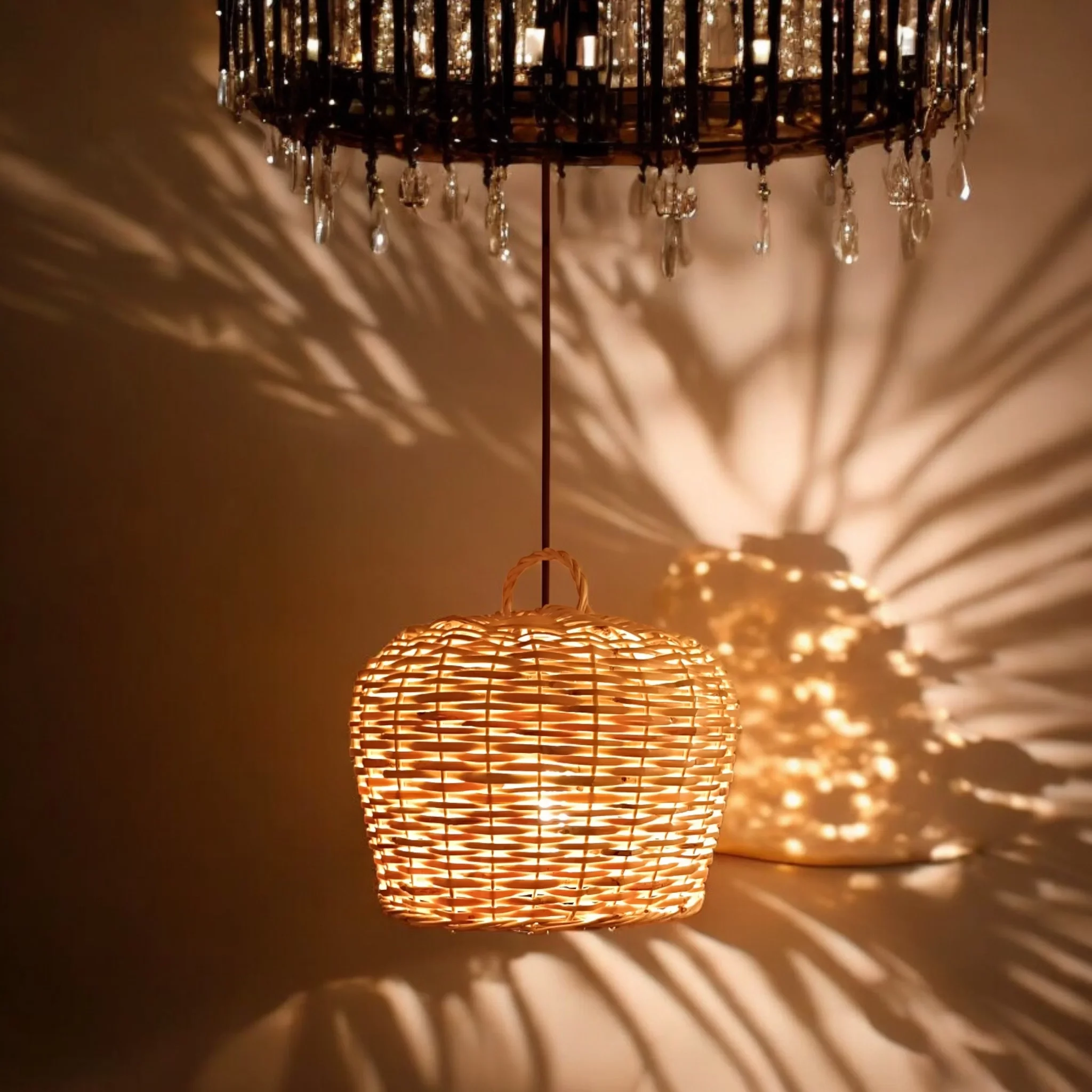 Kolay montaj özelliği ve hafif yapısıyla pratik bir kullanım sunan bu dekoratif sarkıt lamba, gün ışığı veya sarı LED ampullerle birlikte sıcak ve yumuşak bir ışık yayar.