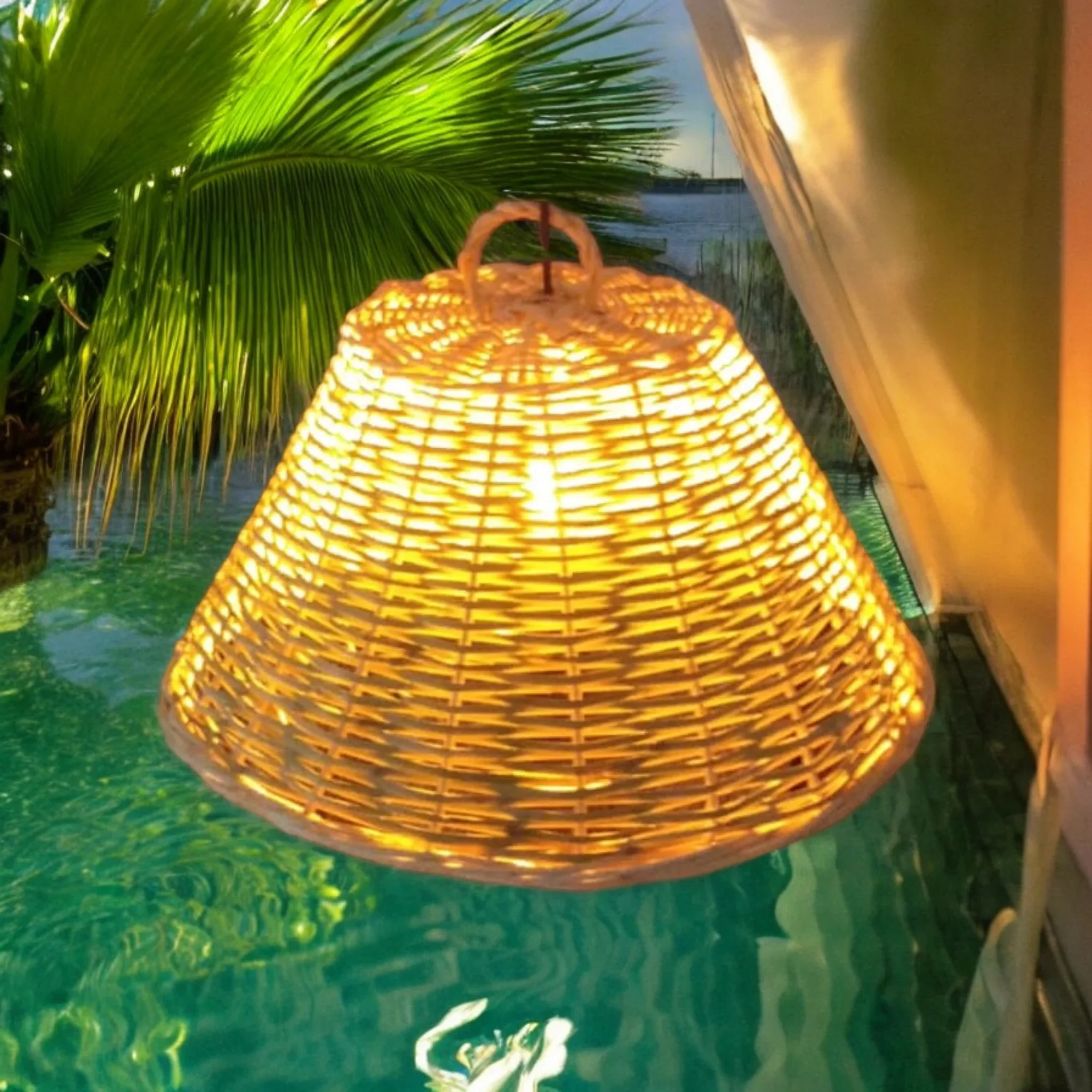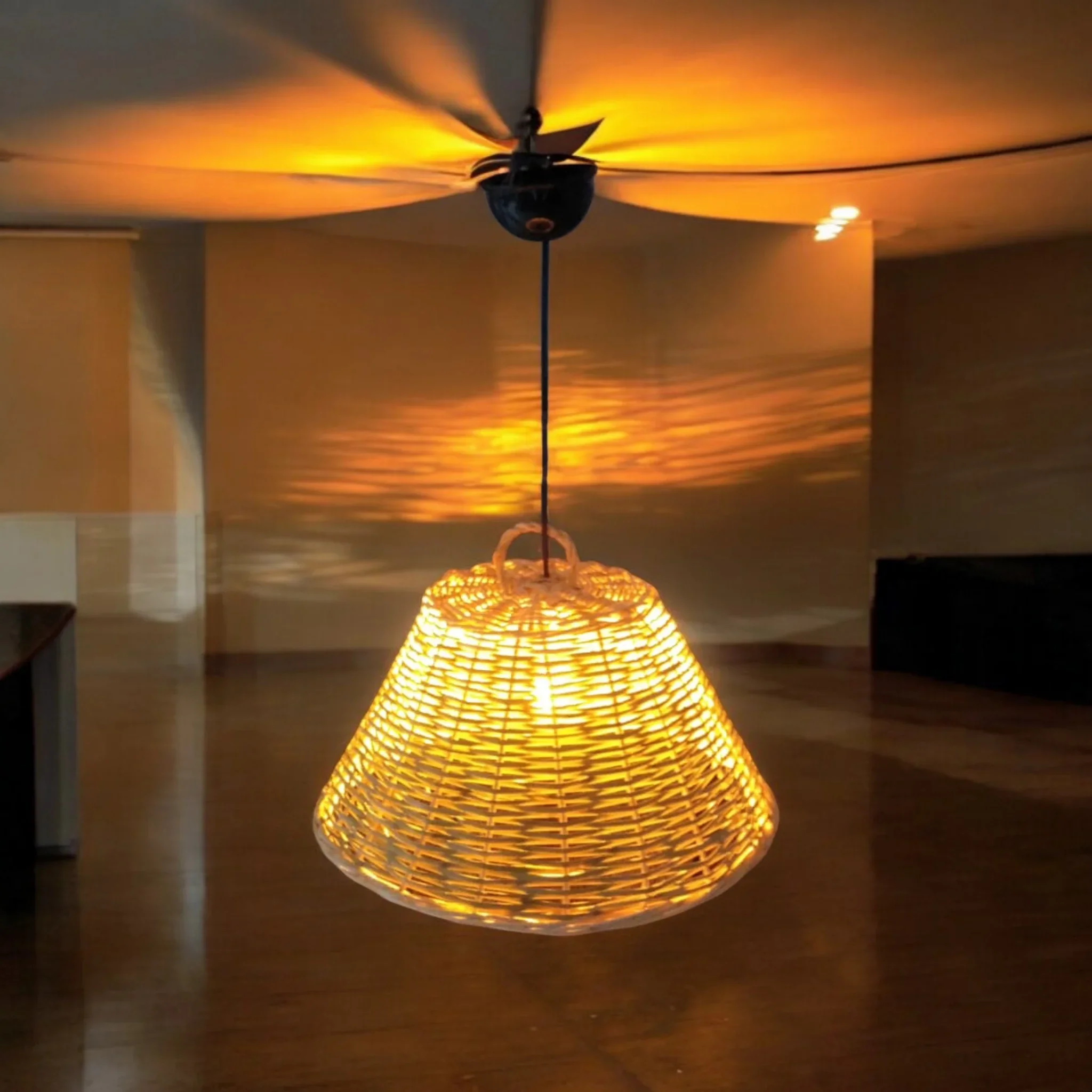Saçaklı yapısı ile hem hareketli hem de yumuşak bir görünüm sunan bu dekoratif hasır avize, salon, yatak odası, mutfak, kafe veya butik gibi farklı alanlarda estetik bir aydınlatma öğesi olarak tercih edilebilir.
