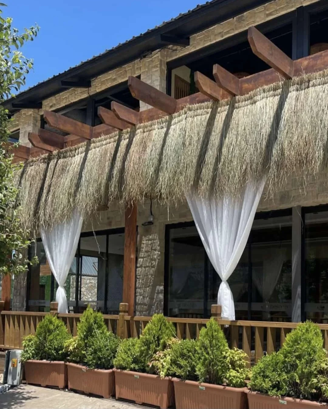 Ses yalıtımı: Püsküllü saçaklı doğal ot kaplama, dışarıdaki gürültüyü azaltarak iç mekanlarda daha sessiz bir ortam sağlar.