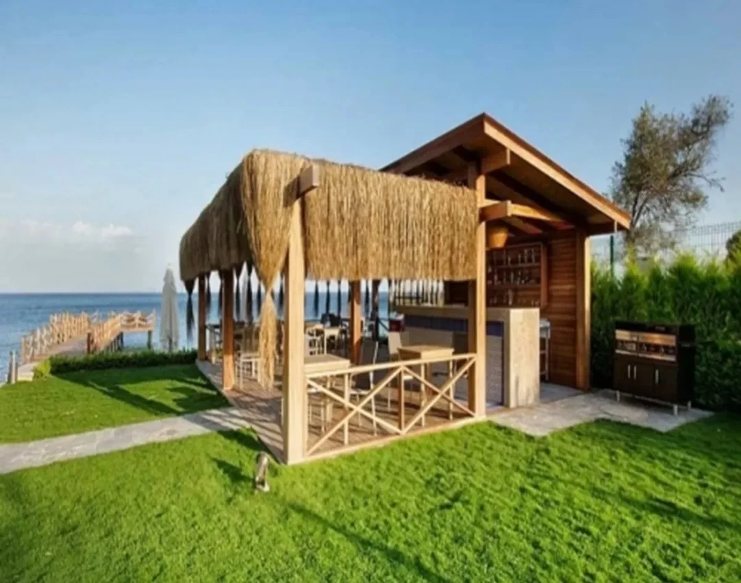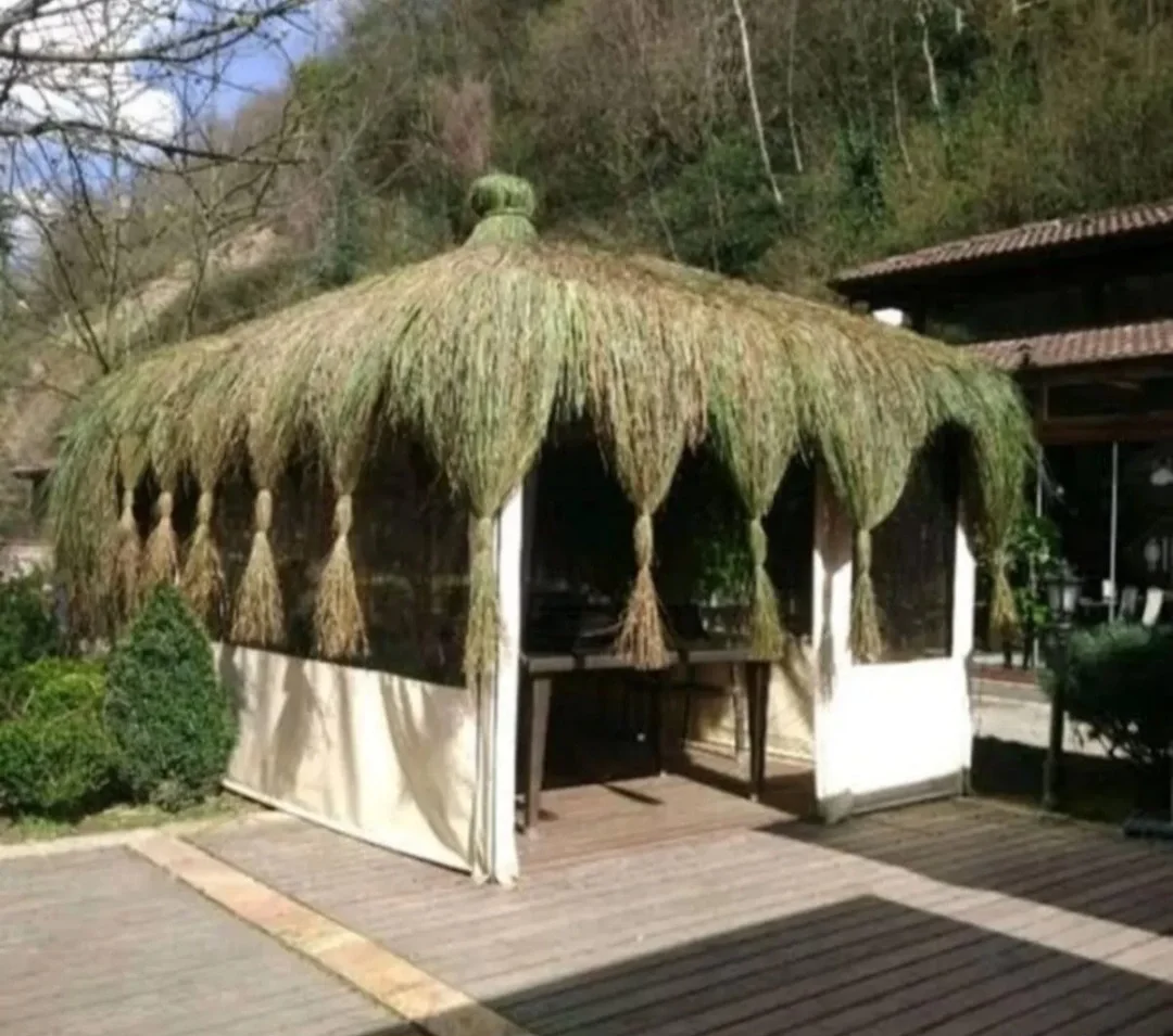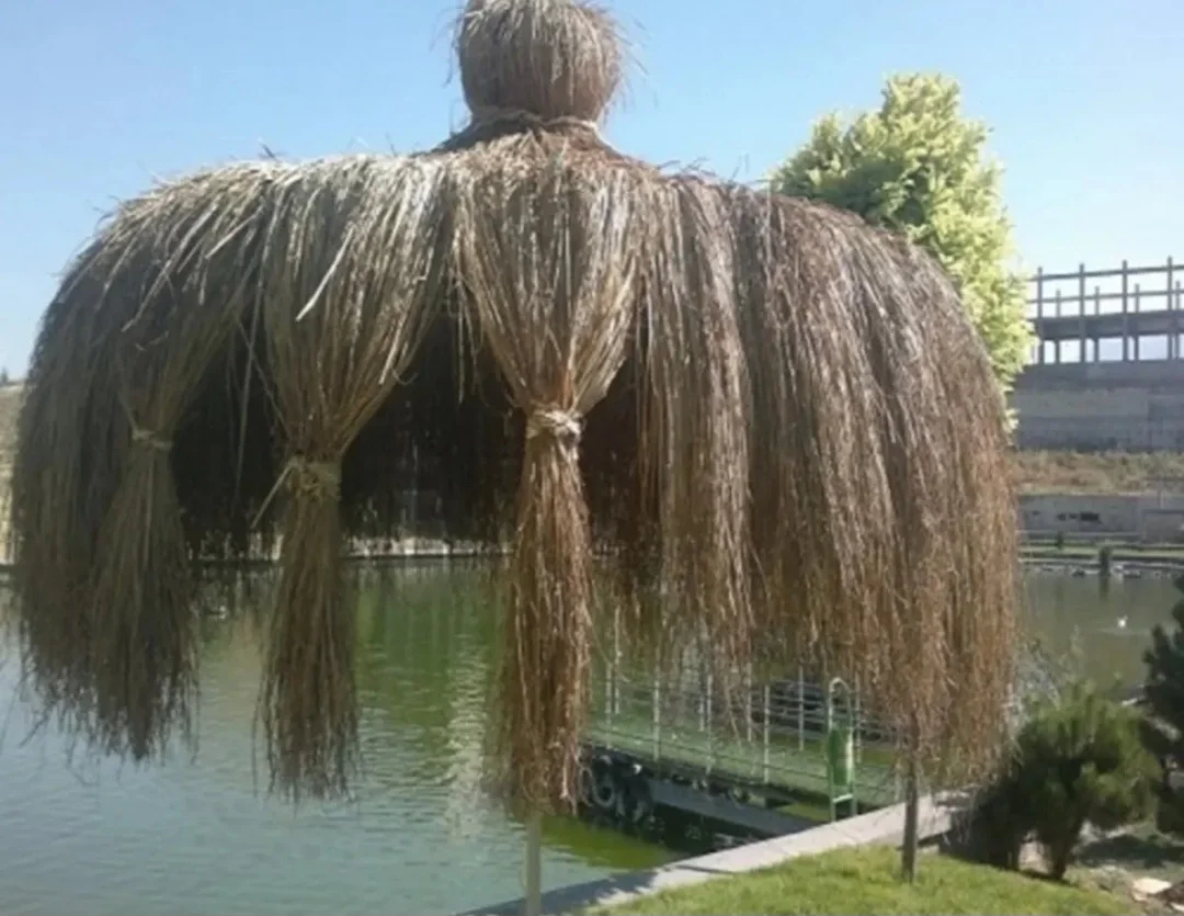 Estetik görünüm: Püsküllü saçaklı doğal ot kaplama, doğal malzemelerin kullanılması sayesinde şık bir görünüm sunar ve bahçe veya teras gibi açık hava alanlarında estetik bir unsur olarak kullanılabilir.